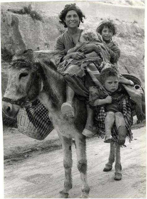 Una madre davanti, quattro bambini dietro.