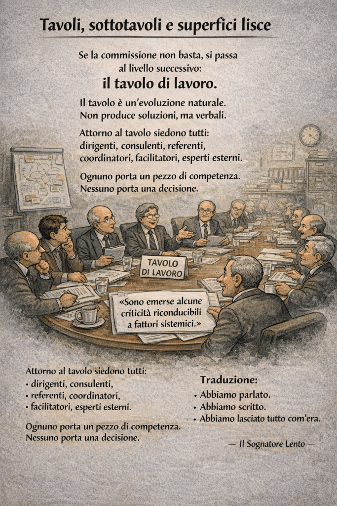 Alla fine, il tavolo partorisce una frase impeccabile, elegante, inattaccabile: