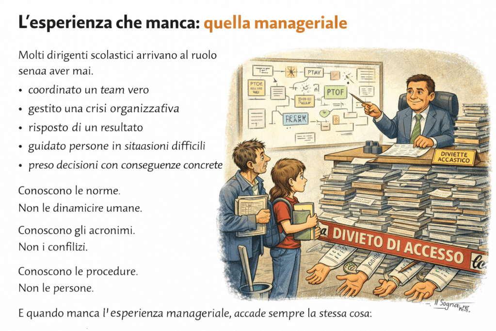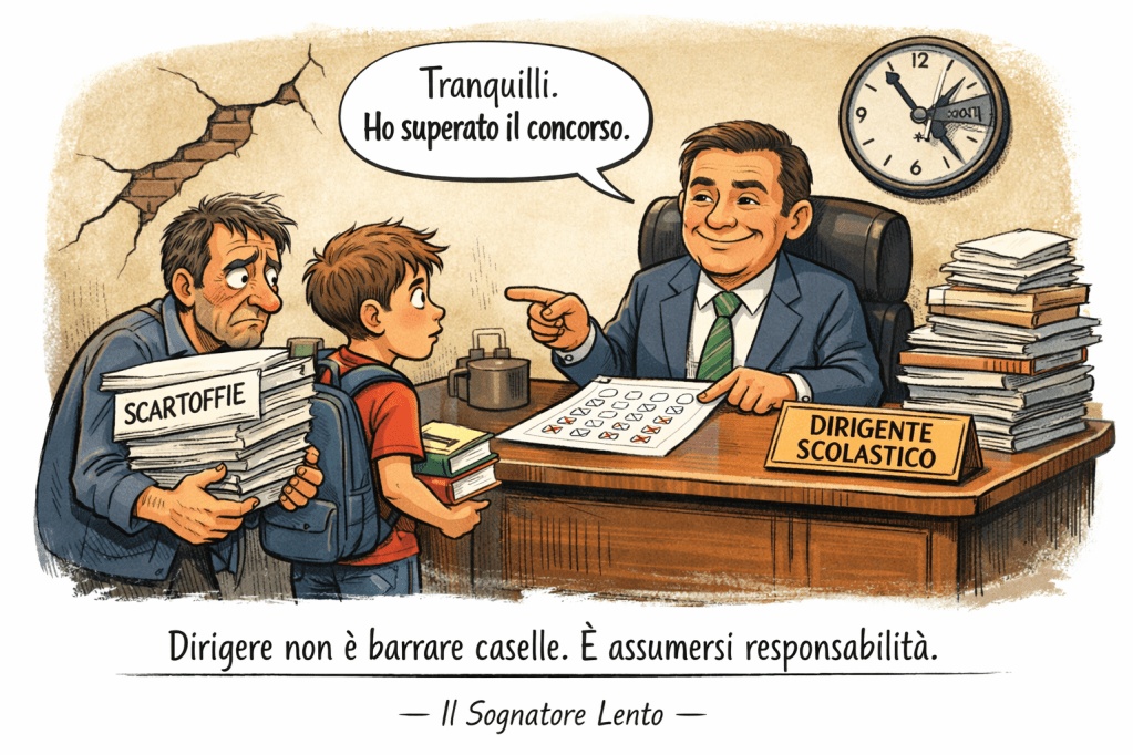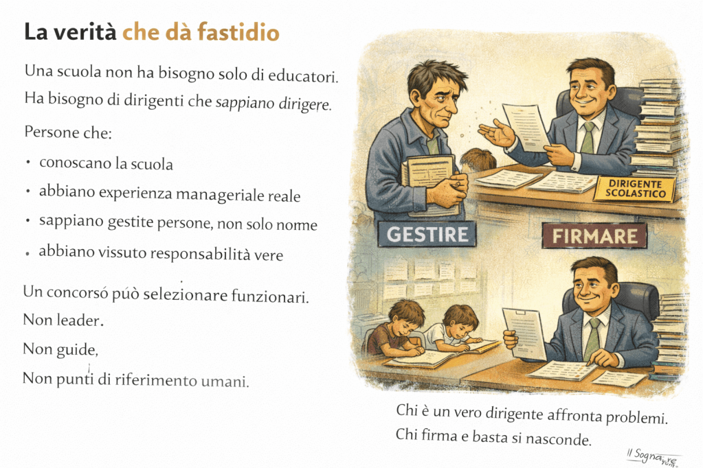 il dirigente scolastico che non sa fare, non sa insegnare, e spesso non sa nemmeno dirigere, ma governa una comunità educativa complessa come se fosse un ufficio qualunque.