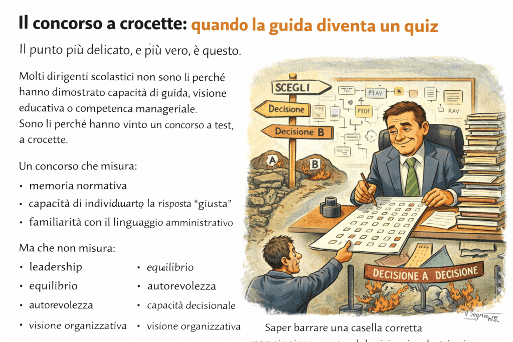 Molti dirigenti scolastici non sono lì perché hanno dimostrato capacità di guida, visione educativa o competenza manageriale.