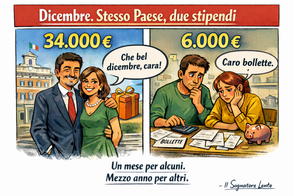 Quando il tuo stipendio di dicembre vale come mezzo anno di un’altra famiglia, il rischio è perdere il contatto con la misura delle cose. Con il peso delle scelte quotidiane. Con l’ansia che accompagna chi sa che basta una spesa imprevista per far saltare l’equilibrio.