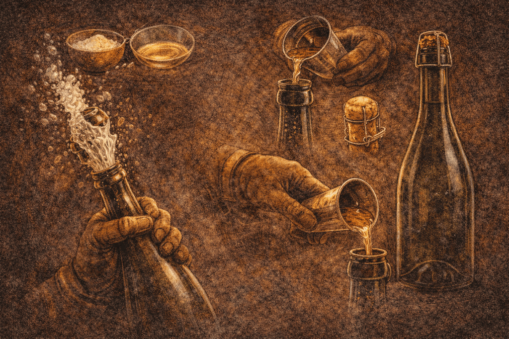 tirage, presa di spuma, remuage, pupitre, gyropalette, sboccatura, dosage.