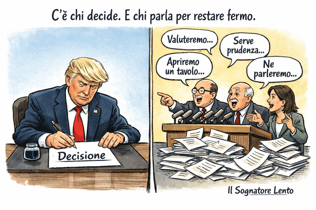 Donald Trump può non piacere nei modi. Anzi, spesso non piace affatto. È ruvido, divisivo, e talvolta eccessivo. Ma c’è un elemento che lo distingue dalla gran parte della classe politica occidentale contemporanea: agisce. Decide. Firma. Espone sé stesso e il proprio consenso alle conseguenze delle scelte.