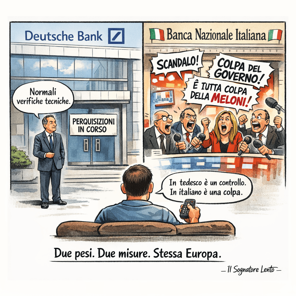 Quando la Deutsche Bank finisce sotto perquisizione, il linguaggio è subito rassicurante:
