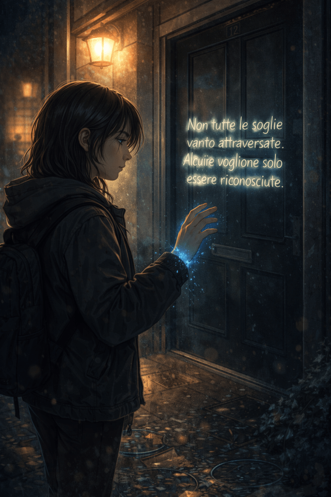 La sera dopo, il cielo si era fatto limpido e tagliente. Le luci dei lampioni disegnavano cerchi imperfetti sull’asfalto bagnato, e ogni riflesso sembrava avere una profondità che prima non c’era. Luna camminava piano, il quaderno stretto contro il petto, cercando di ricordare la lezione più difficile imparata fino a quel momento: non tutto ciò che chiama va seguito.