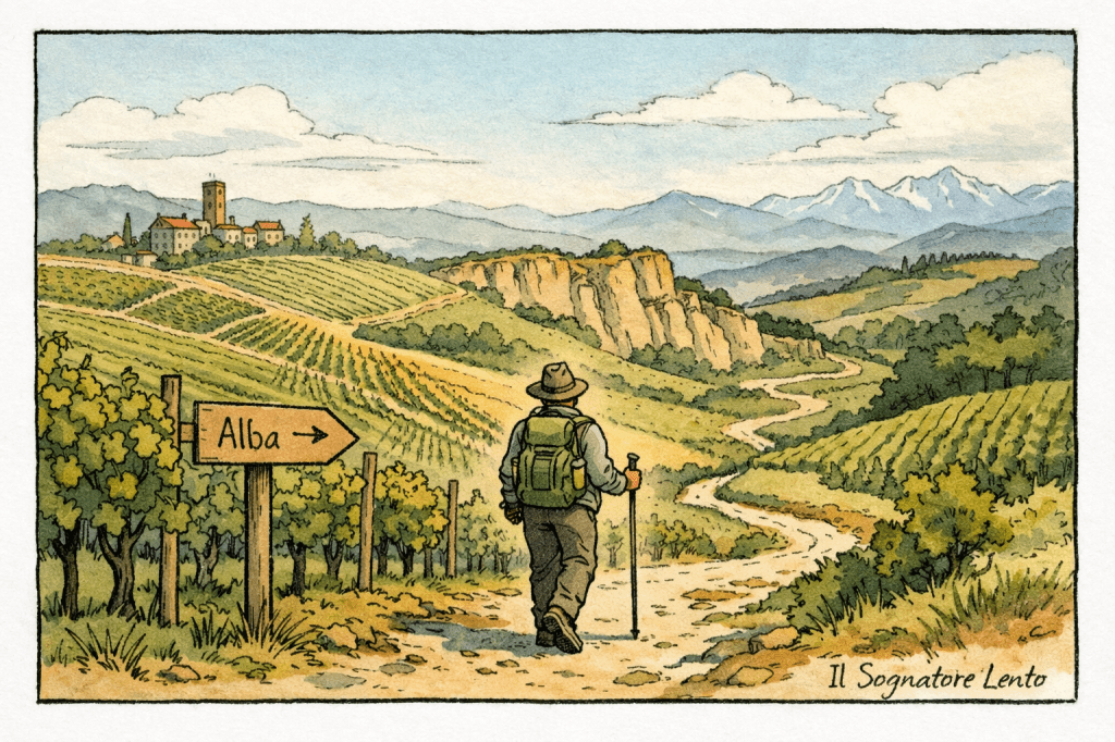 Si parte da Alba, che non è solo una città ma una soglia.
